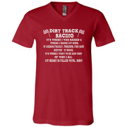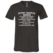 Embrace your heritage and your love of dirt track racing by wearing our "Dirt Track Racing It's Where I Was Raised Unisex Jersey SS V-Neck T-Shirt." Whether you're a seasoned racer or just a fan with deep roots in the sport, this tee is the perfect way to show your devotion to both. Get suited up and get ready to attack the pavement in comfort and style!