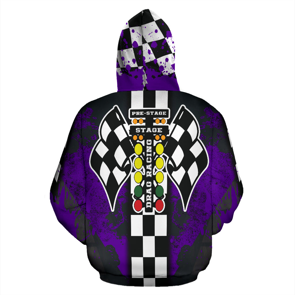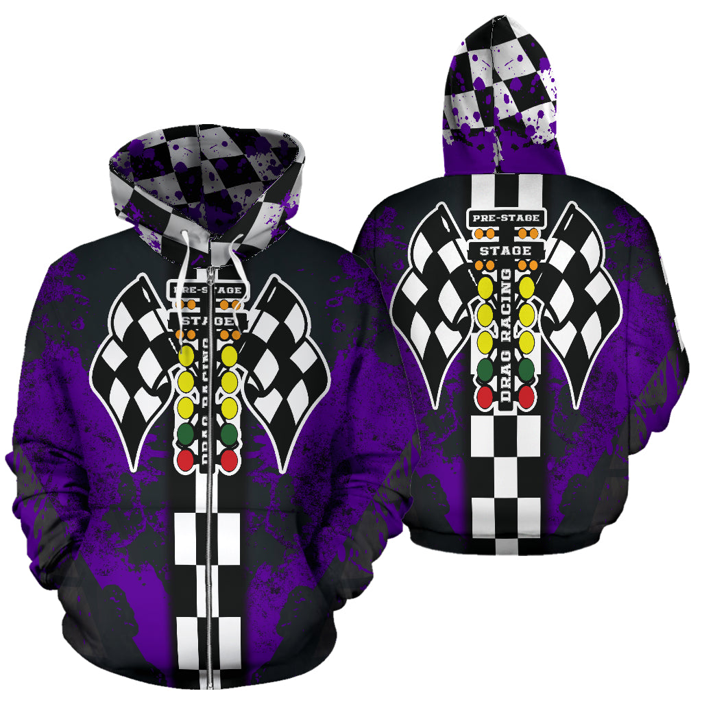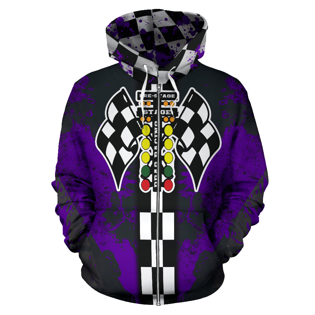 Drag Racing All Over Print Zip Up Hoodie Purple