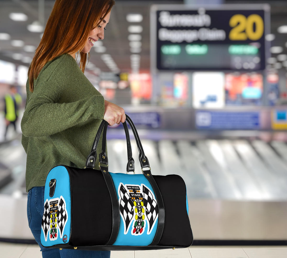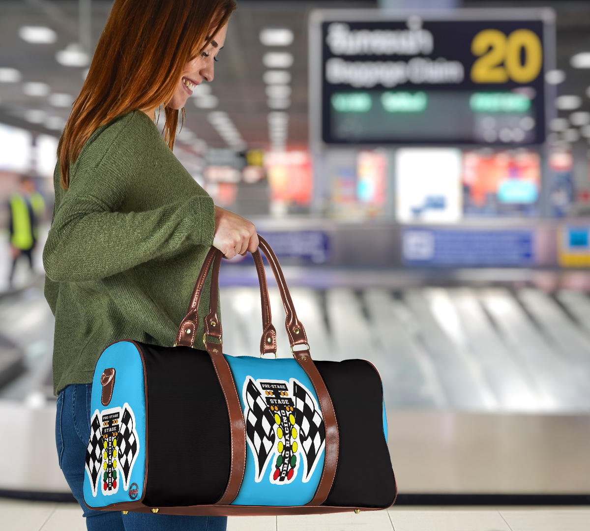 Here's the latest in fast and fashionable travel accessories: the Drag Racing Travel Bag.