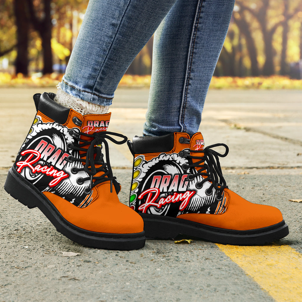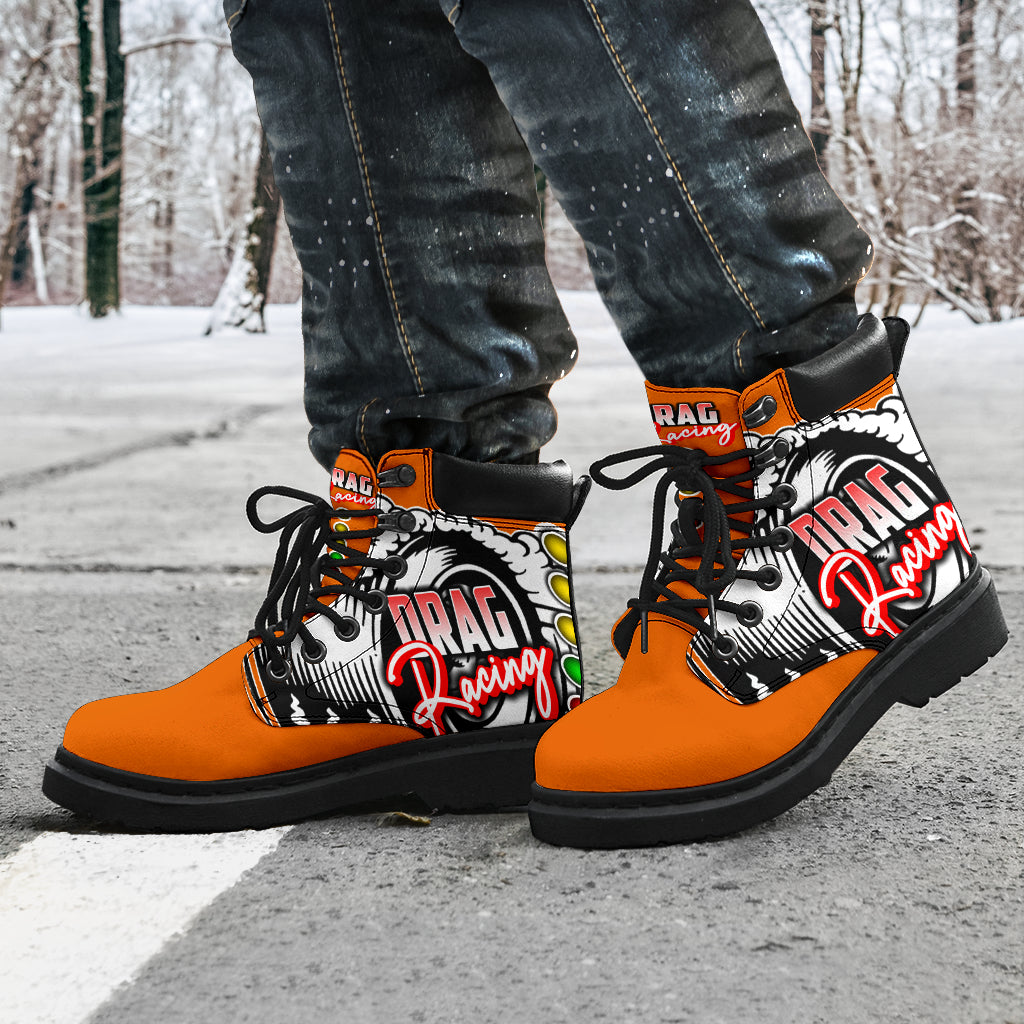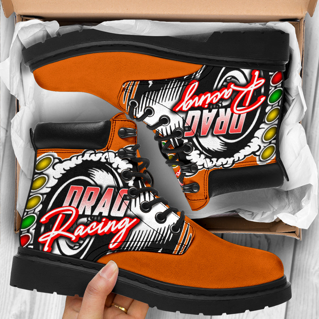 Neither performance nor aesthetics should be compromised. Invest in a pair of our Drag Racing All-Season Boots to step up your shoe game. Let your competitive juices flow and charge headfirst into the exciting world of drag racing. Get yours today and feel the rush of the dragstrip for yourself!