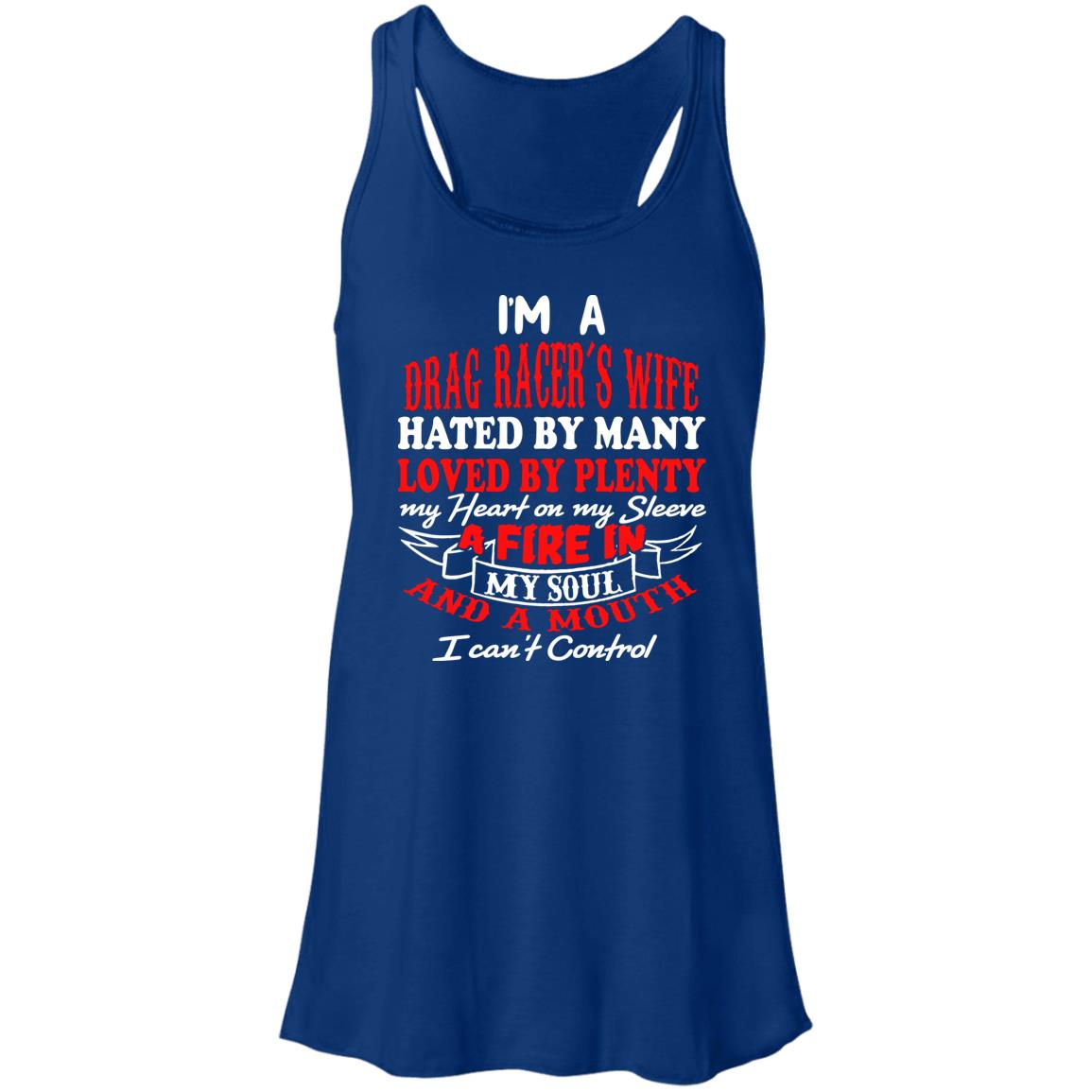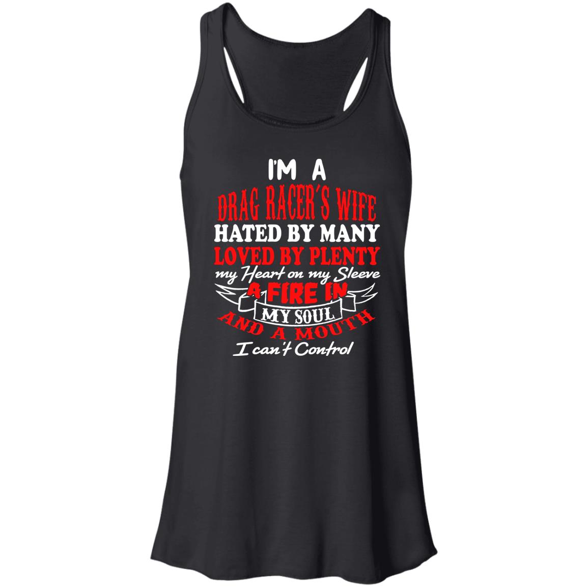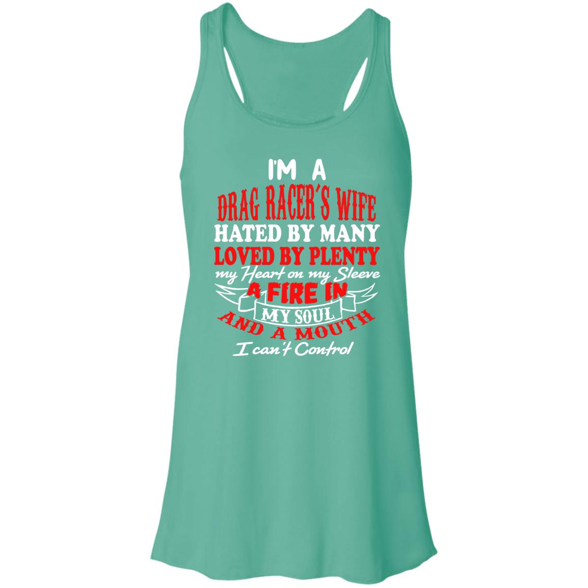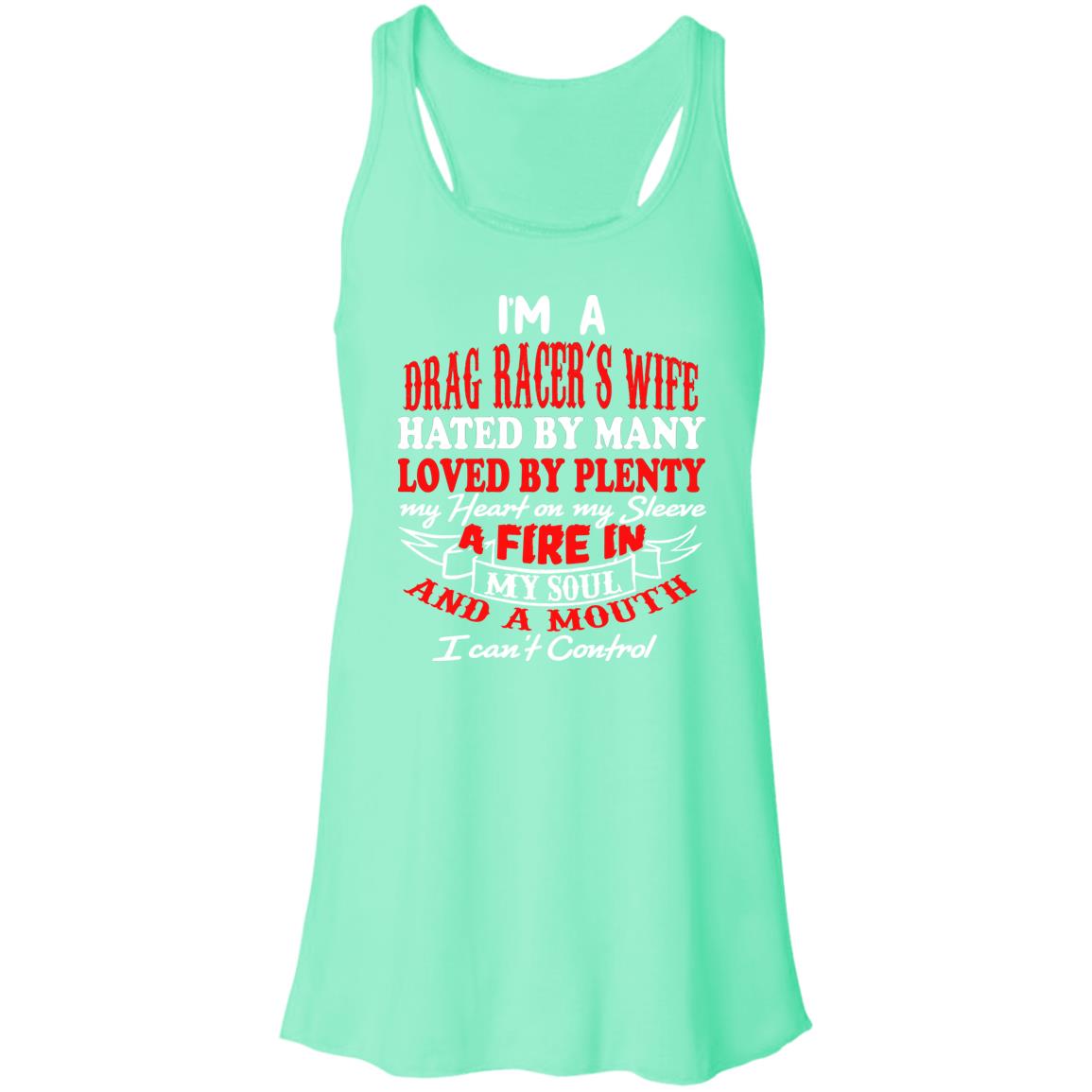 You'll be hated by some and loved by others, but that won't stop you from proudly wearing our "I'm A Drag Racer's Wife Hated By Many Loved By Plenty" Flowy Racerback Tank. Whether you're going out for a casual day or cheering on your drag racer partner at the track, this top will make you look and feel great no matter the situation thanks to its ultra-soft fabric, figure-flattering cut, and bold messaging. Put it on and shout from the rooftops that you're the wife of a drag racer who is well-liked and unconcerned by the naysayers.