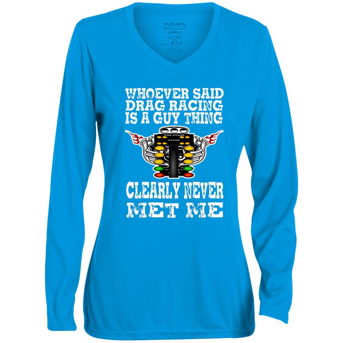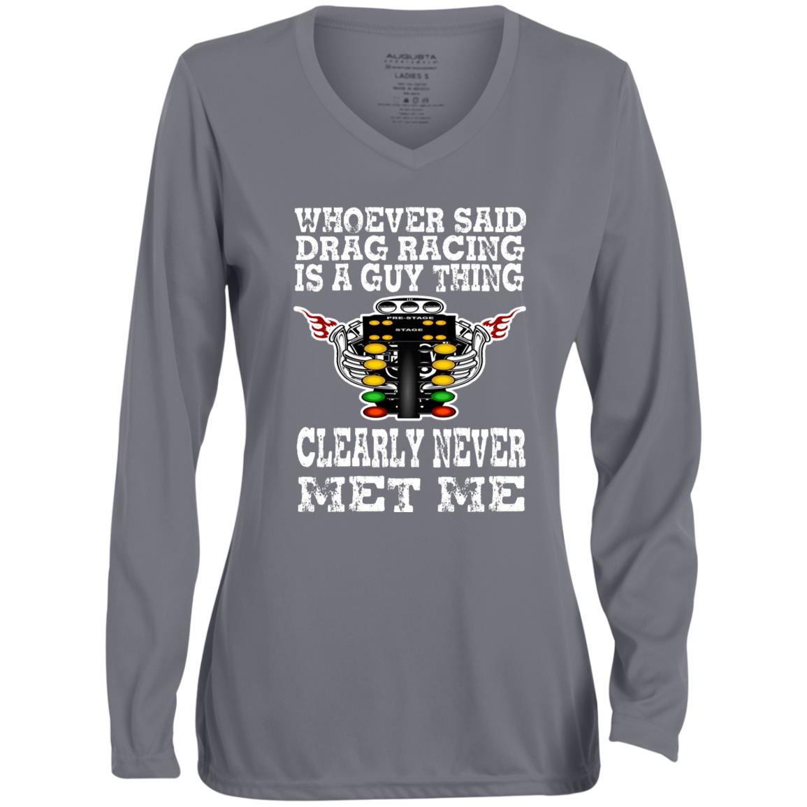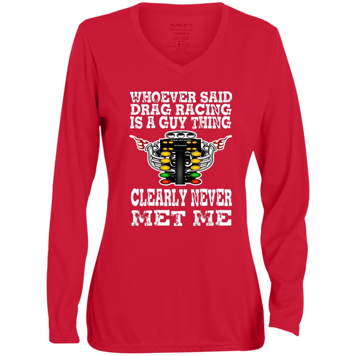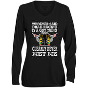 Whoever Said Drag Racing Is A Guy Thing Ladies' Moisture-Wicking Long Sleeve V-Neck Tee