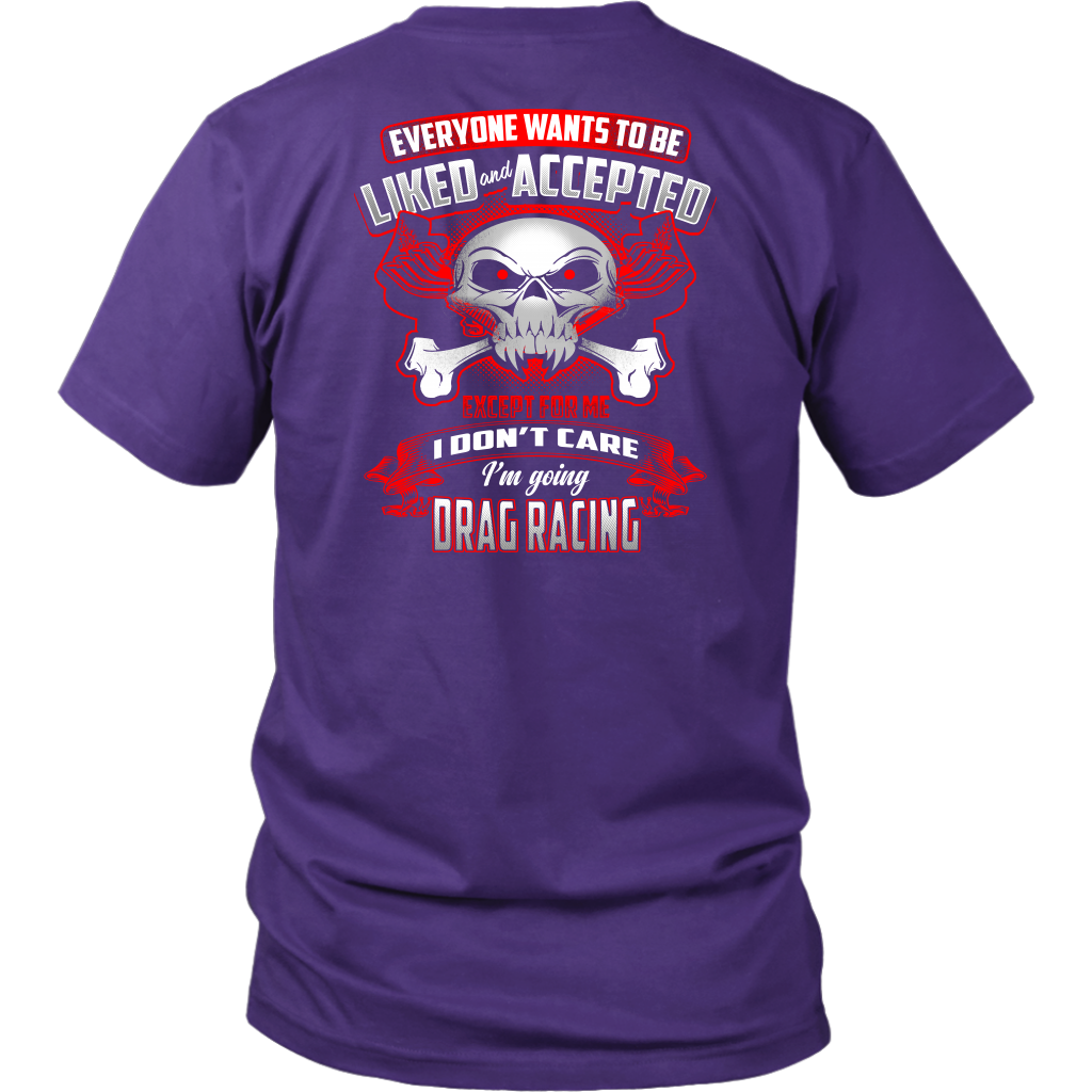 We're proud to present our one-of-a-kind "Everyone Wants To Be Liked And Accepted Except Me I Don't Care I'm Going Drag Racing" T-shirts to the individuals who are unafraid to stand out and enjoy the thrill of high speeds.