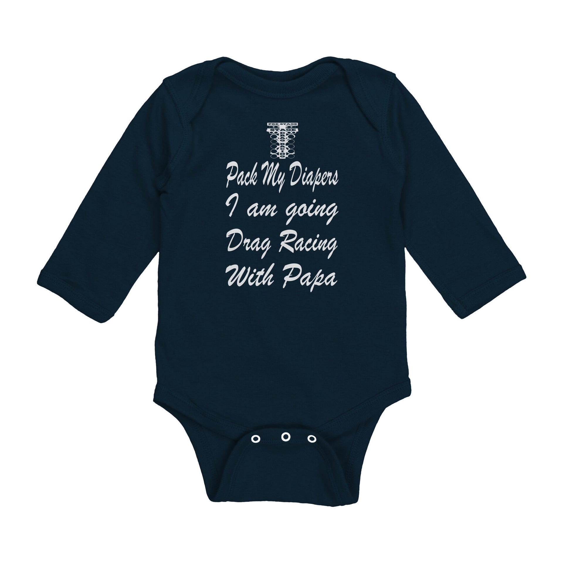 Pack My Diapers I am going Drag Racing With Papa Onesies