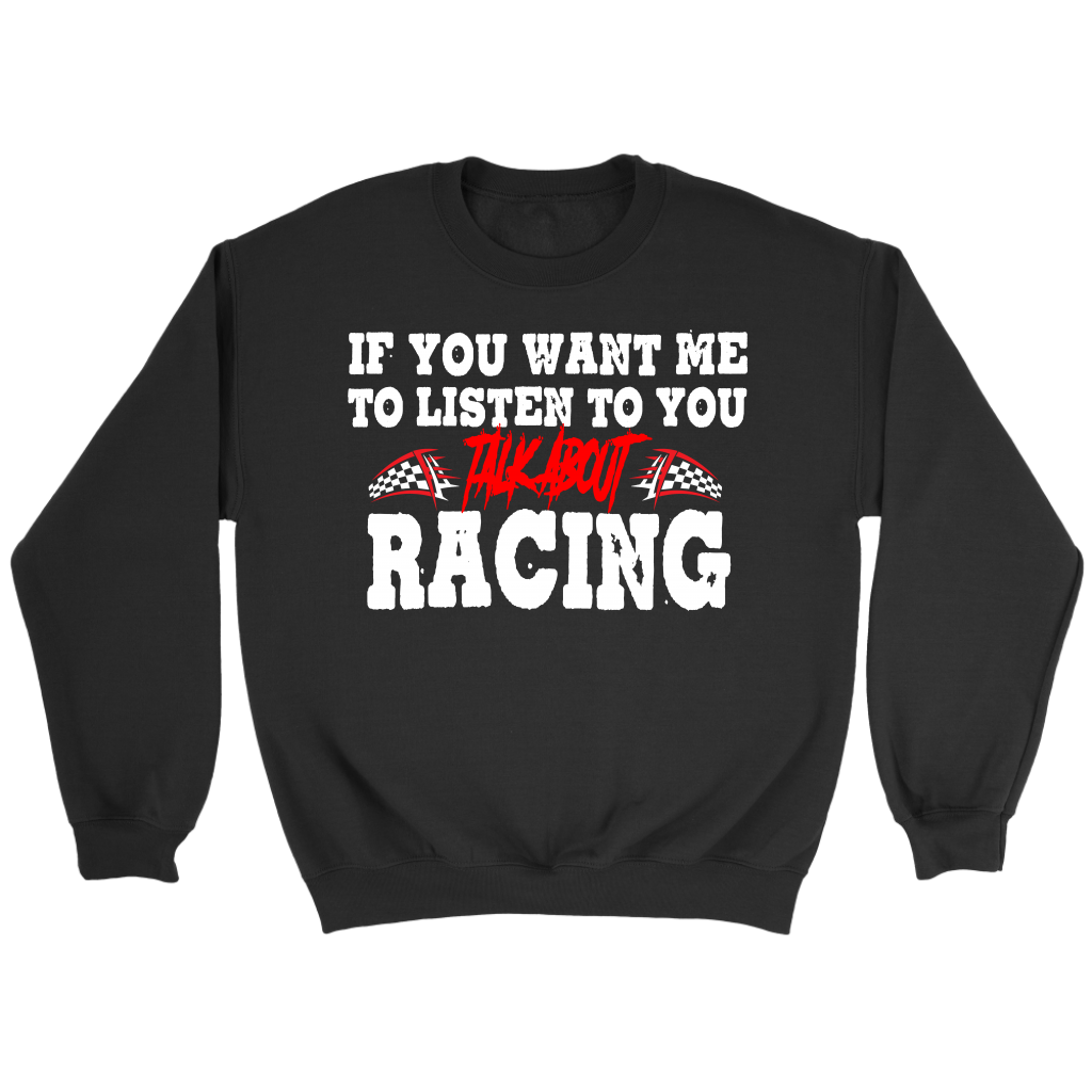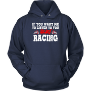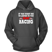 Demonstrate your enthusiasm for auto racing and show that you're eager to engage in conversation on the topic. Our "If You Want Me To Listen To You Talk About Racing" collection has you covered in comfort and style, whether you opt for a standard tee, a hoodie, or a v-neck.