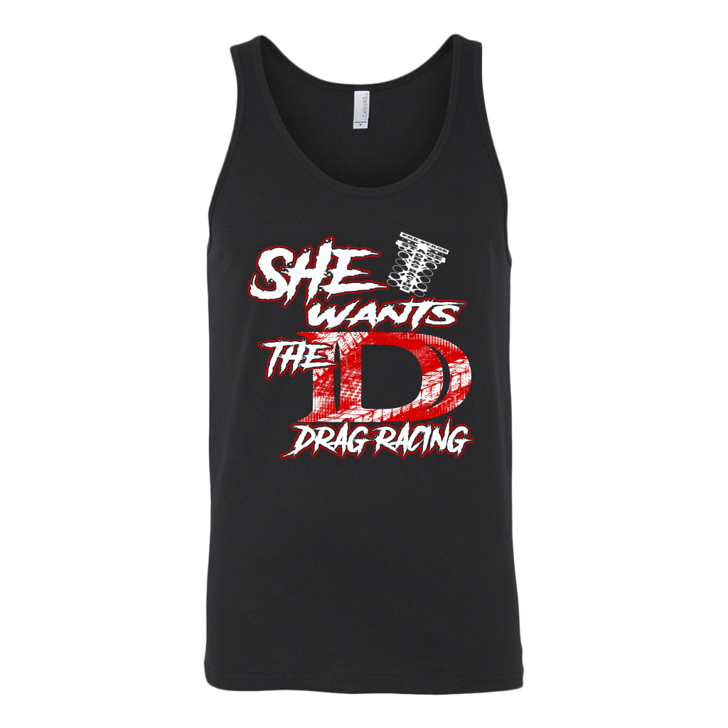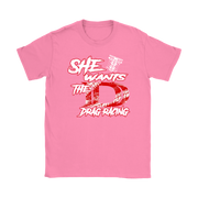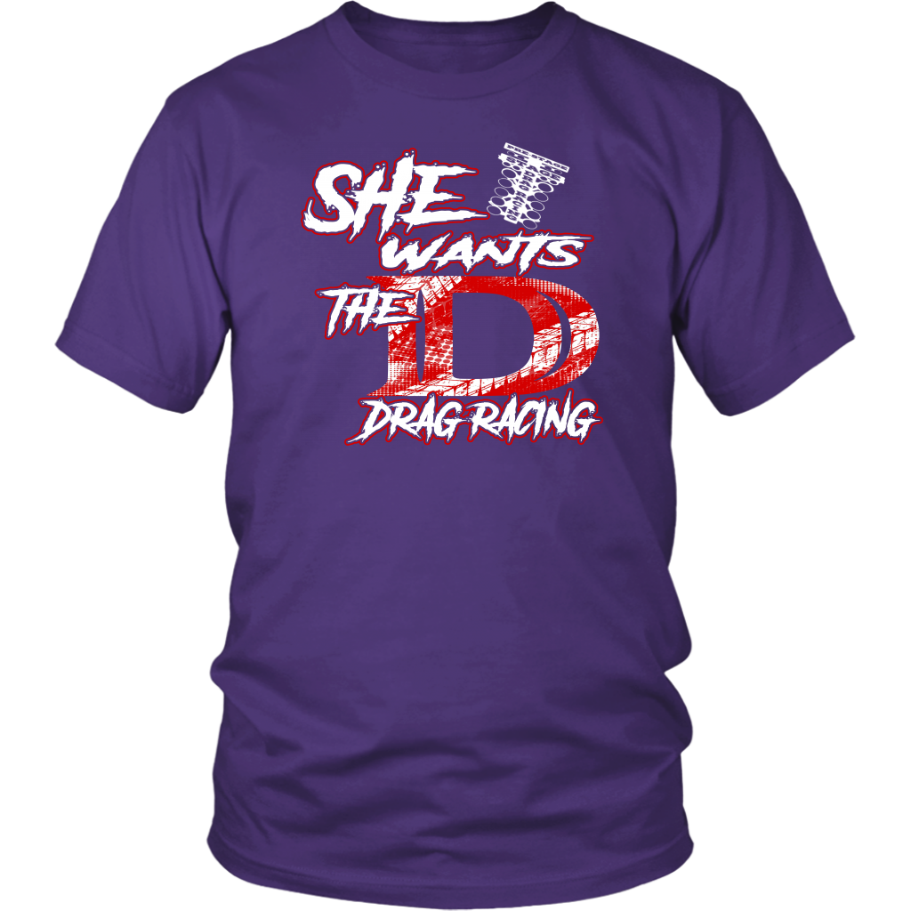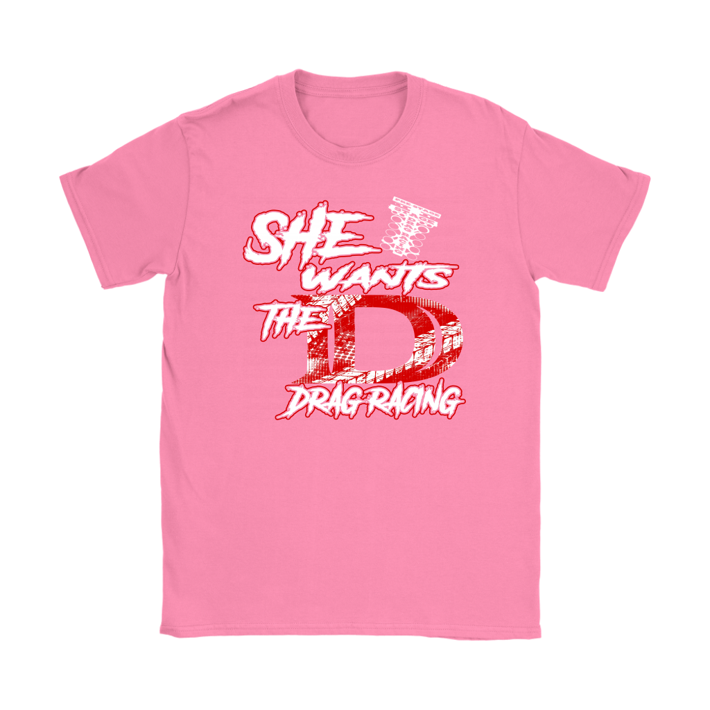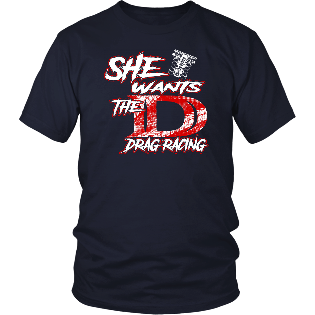 Designed with care, the "She Wants The Drag Racing" logo conveys your passion for the sport in a subtle yet striking way. This shirt embodies the spirit of speed and intensity, whether you're driving or applauding from the sidelines.