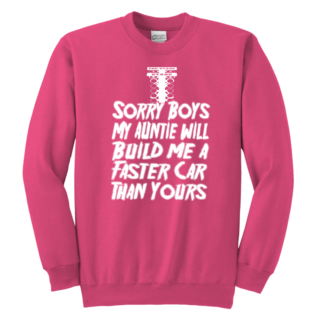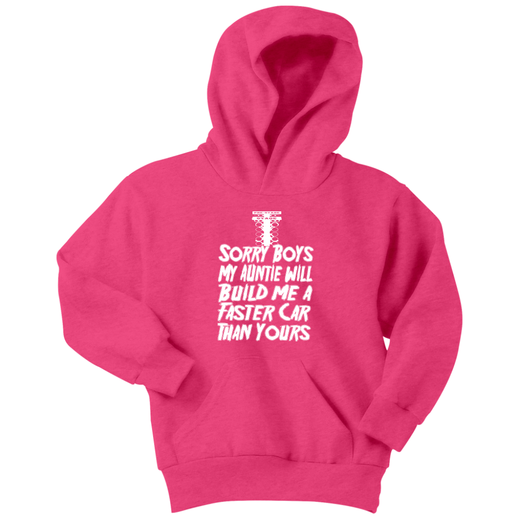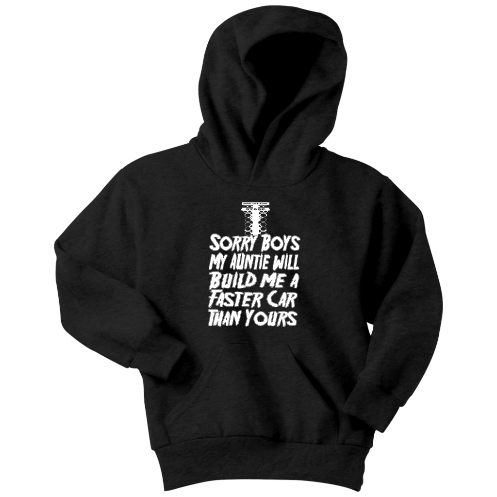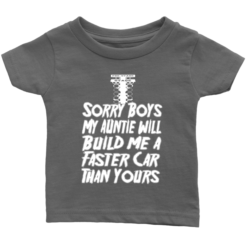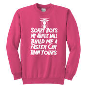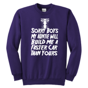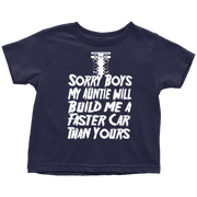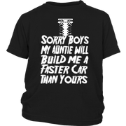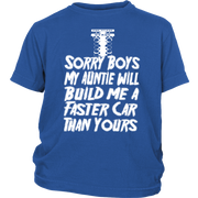 Sorry Boys My Auntie Will Build Me A Faster Car Than Yours Drag racing Kids T-Shirts!
