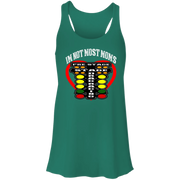 Don't settle for ordinary racing apparel. Elevate your style and performance with the "I'm Not Most Moms Drag Racing" Flowy Racerback Tank and let your passion for racing shine bright!