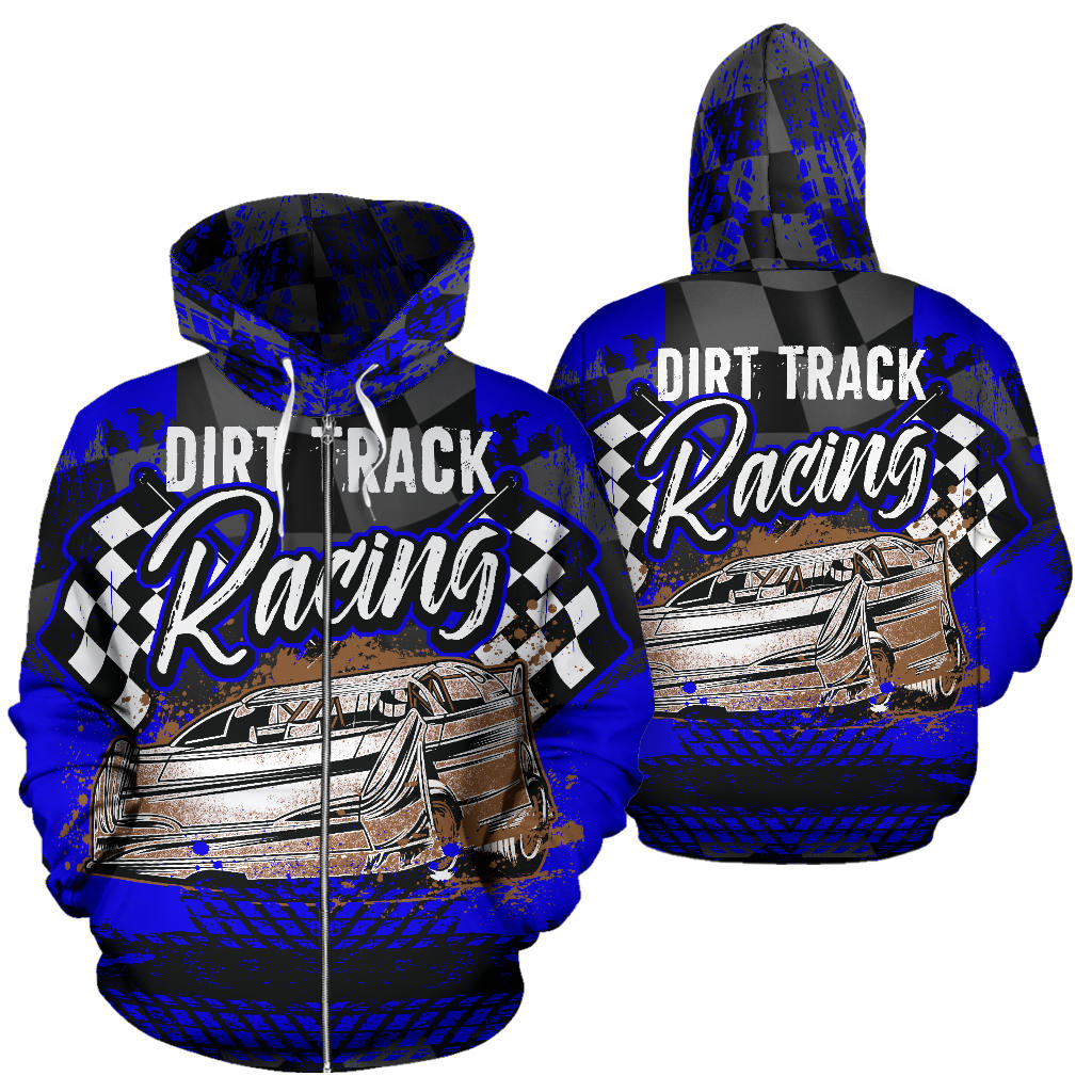 Dirt Track Racing All Over Print Zip Up Hoodie Blue!