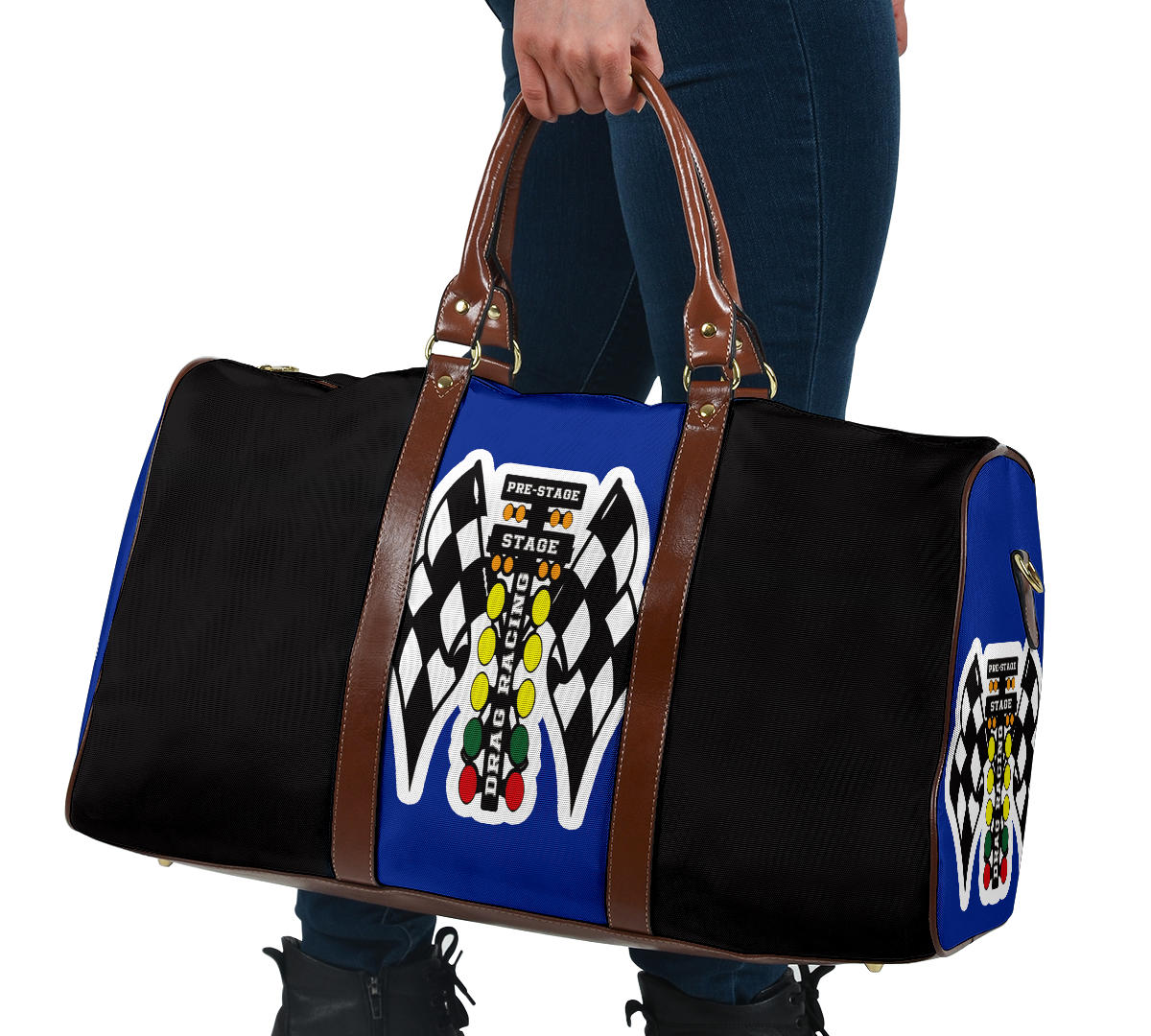 Here's the latest in fast and fashionable travel accessories: the Drag Racing Travel Bag.