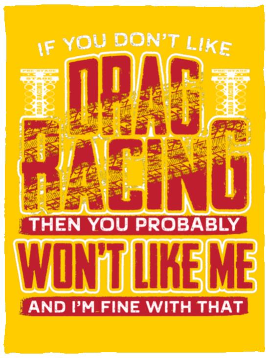 If you know someone who loves drag racing, they'll love our "If You Don't Like Drag Racing" Cozy Plush Fleece Blanket - 30x40. Let your affection for the exciting sport of drag racing show while you relax and enjoy the plush surroundings.