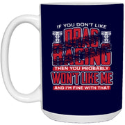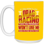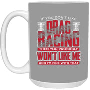If You Don't Like Drag Racing Then Probably Won't Like Me 15 oz. White Mug