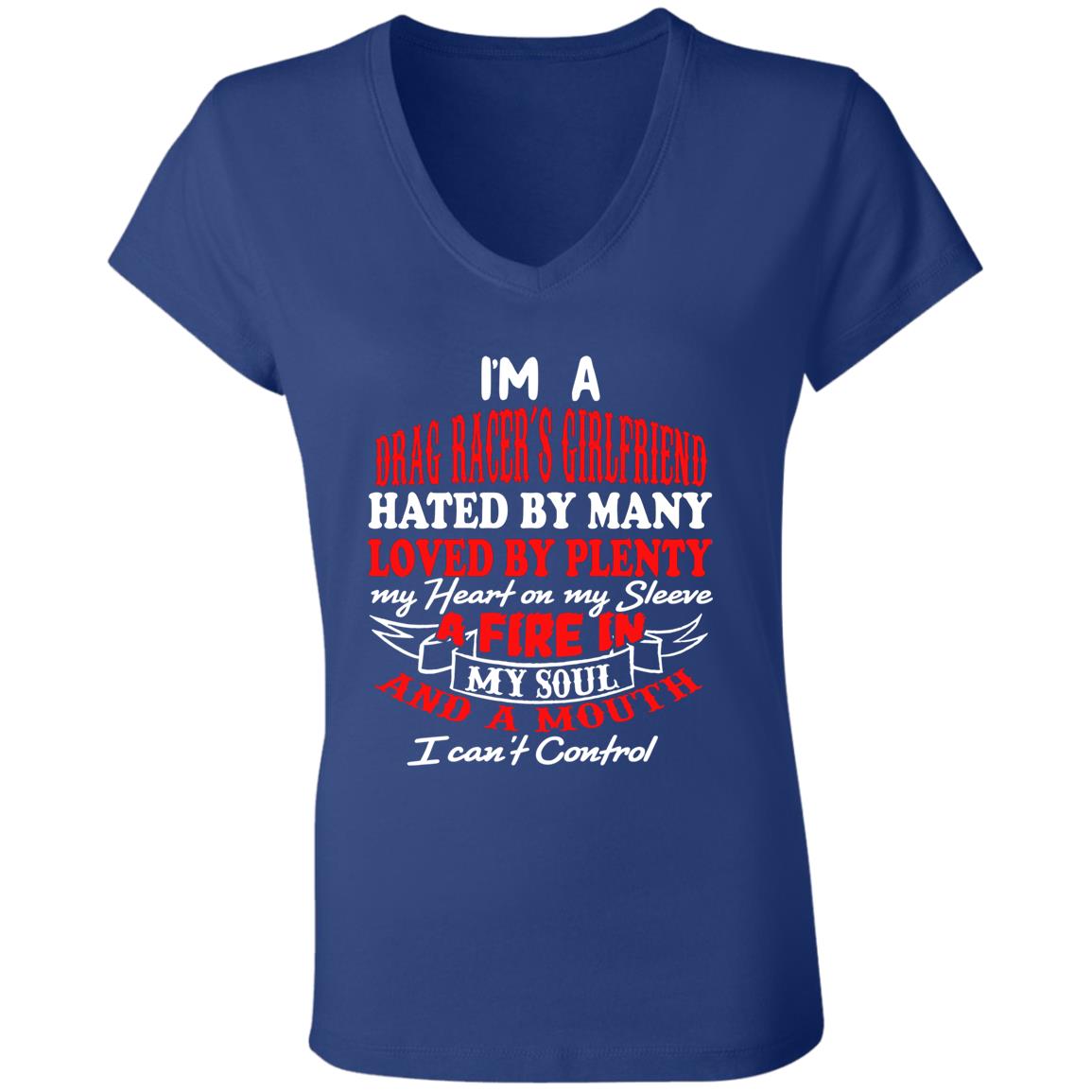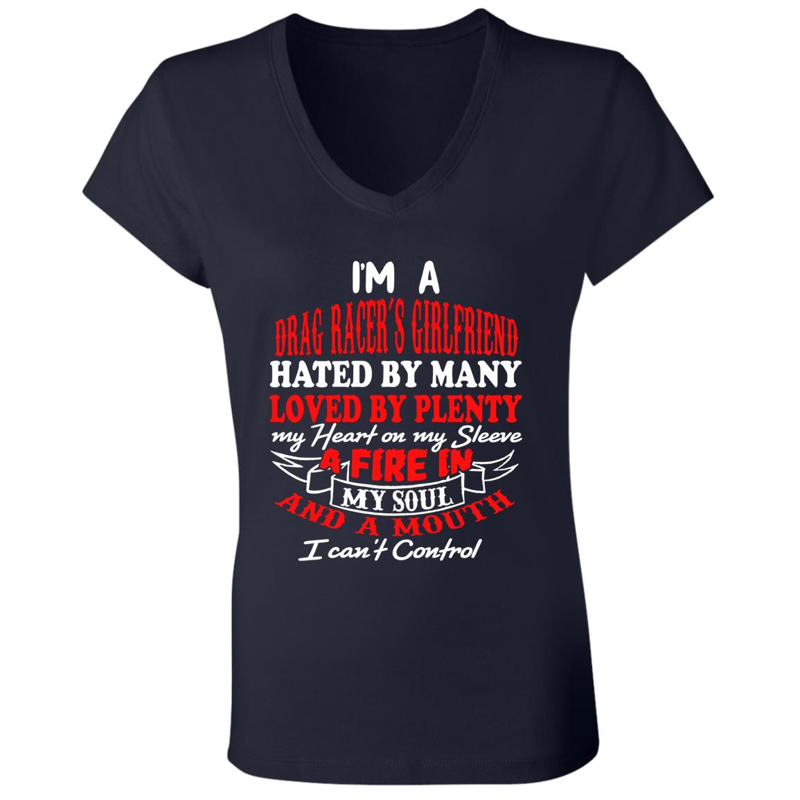I'm A Drag Racer's Girlfriend Hated By Many Loved By Plenty Ladies' Jersey V-Neck T-Shirt
