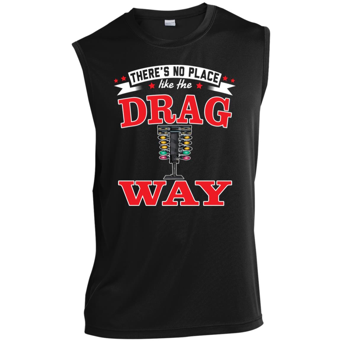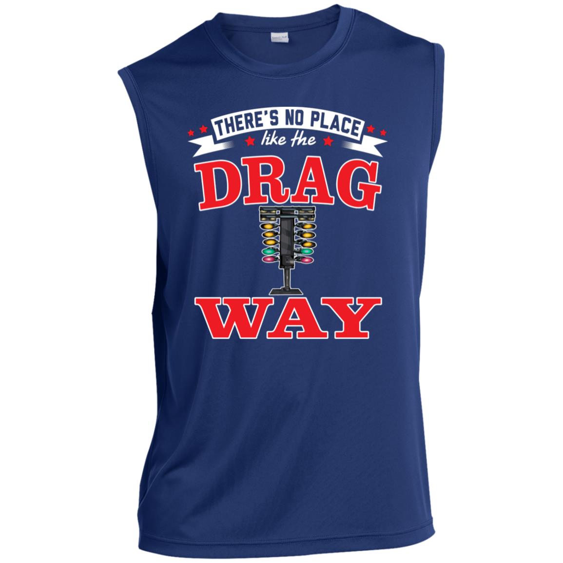 Those in search of convenience and efficiency on the drag strip will appreciate the "There's No Place Like The Dragway" Sleeveless Performance Tee for Men. You can count on this tee to keep you dry and comfortable while you're working up a sweat at the gym.