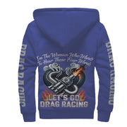 I'm The Woman Who wants to Hear Those Four Words Let's Go Drag Racing Sherpa Jacket Blue