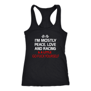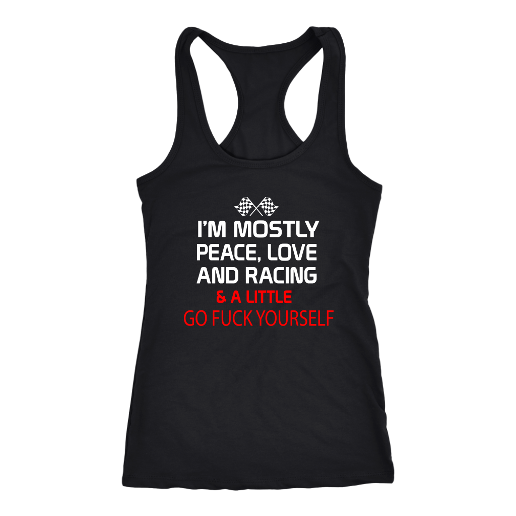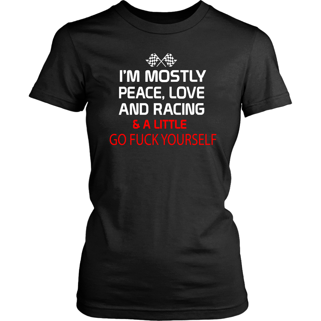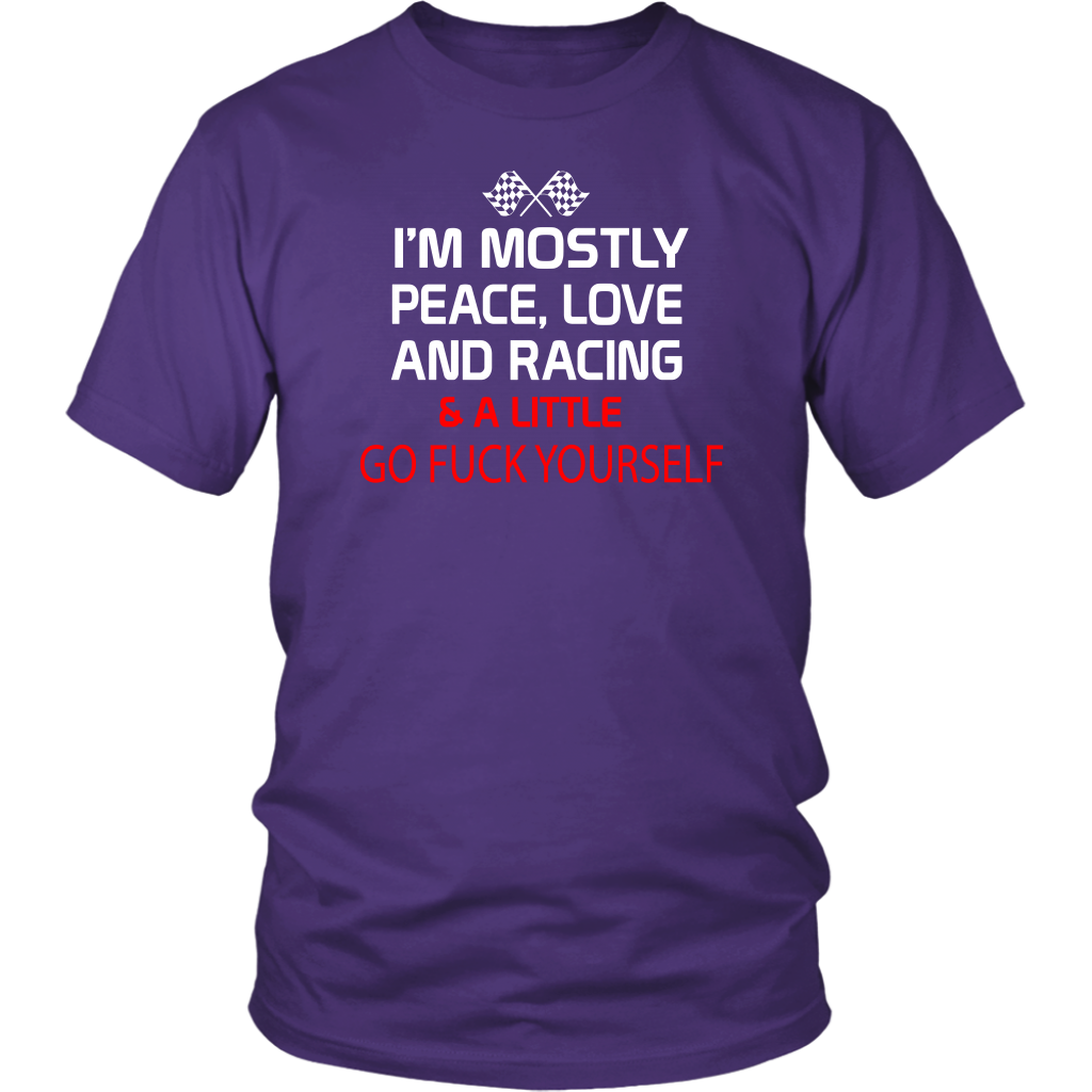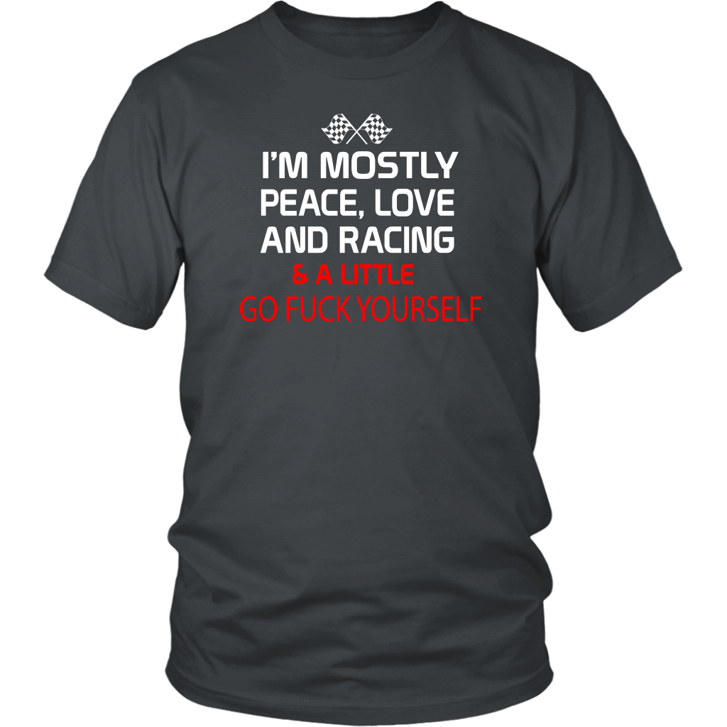 I'm Mostly Peace Love And Racing & A Little G F Yourself T-Shirts!