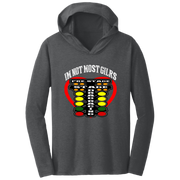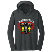 Gear up with our "I'm Not Most Girls" Drag Racing Triblend T-Shirt Hoodie – a must-have for every fierce female racer.