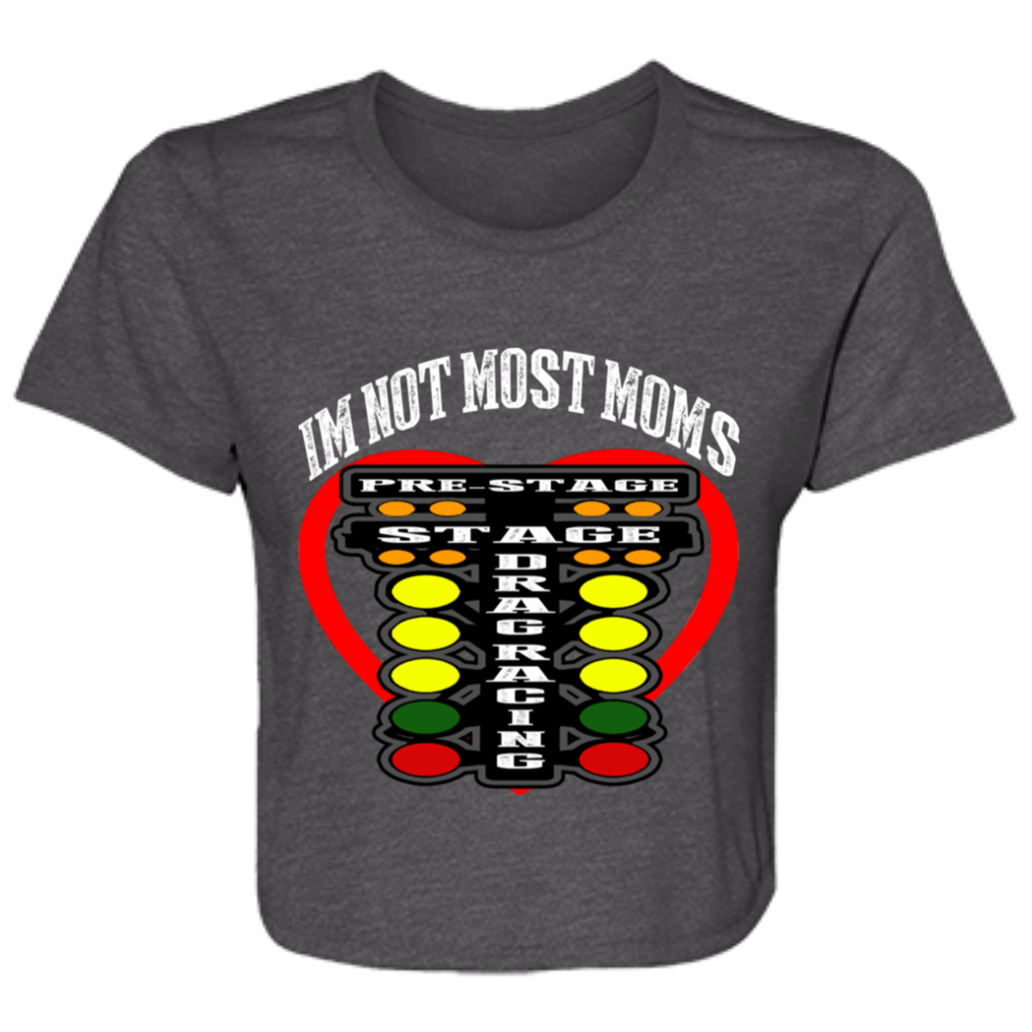 Get ready to elevate your racing style with our "I'm Not Most Moms Drag Racing" Ladies' Flowy Cropped Tee! Designed for the modern and stylish racer, this tee combines comfort, versatility, and a touch of attitude.