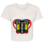 Don't settle for ordinary racing apparel. Elevate your look with our "I'm Not Most Moms Drag Racing" Ladies' Flowy Cropped Tee and let your racing spirit shine!