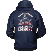 Get the Weekend Forecast Drag Racing with a Chance of Drinking Tee and show the world how much you love drag racing. You can wear these products proudly to the racetrack, to a party, or just around the house to show off your enthusiasm for the sport. Our extensive stock of drag racing t-shirts and sweatshirts will help you look great no matter the temperature outside. Get one now to show your support for the high-octane sport of drag racing.
