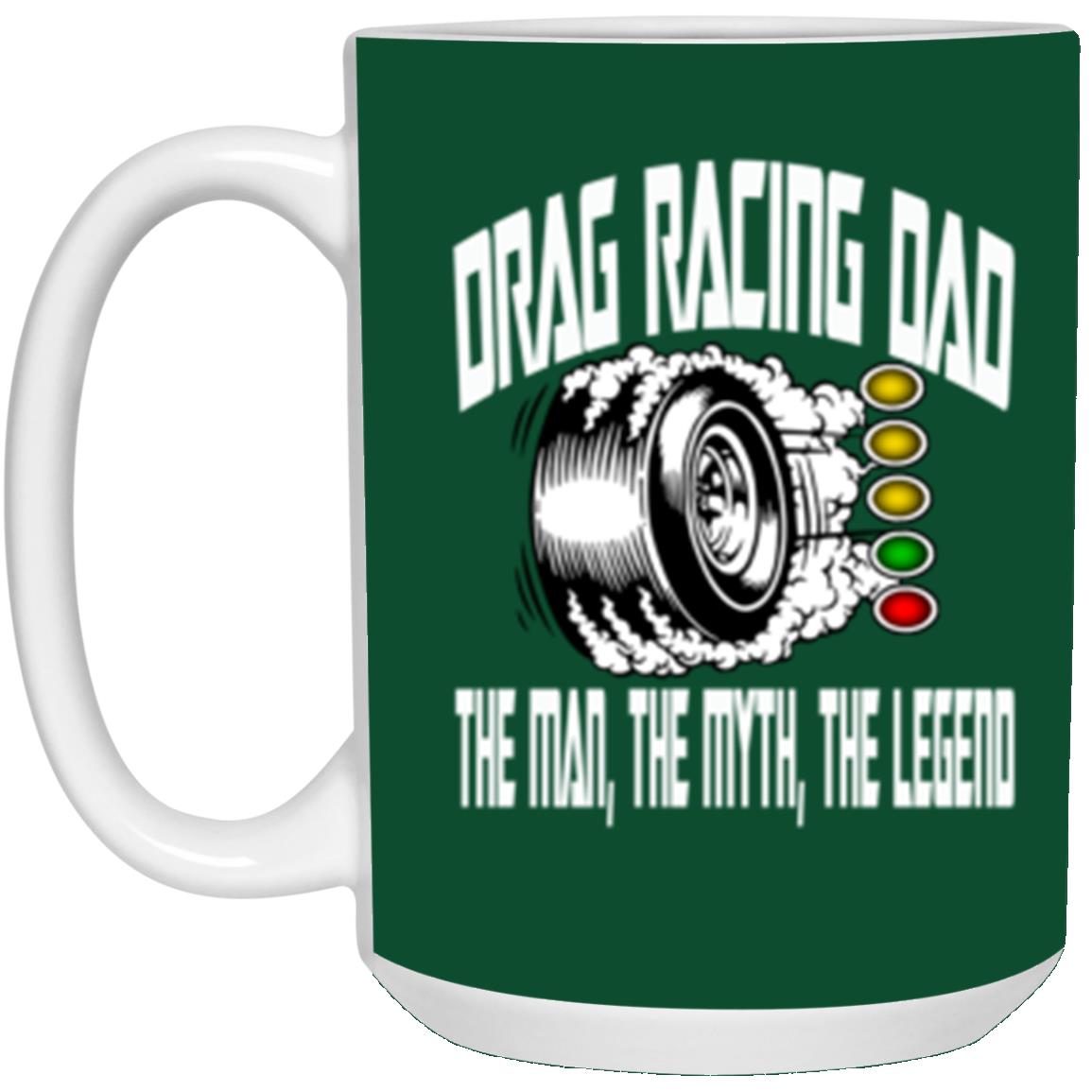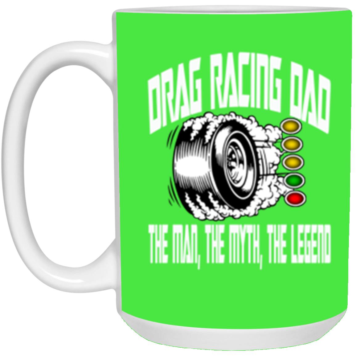 The Drag Racing Dad 15 oz. White Mug is the perfect way to kick off your morning. This white gloss ceramic mug is made to last and is of the highest quality.