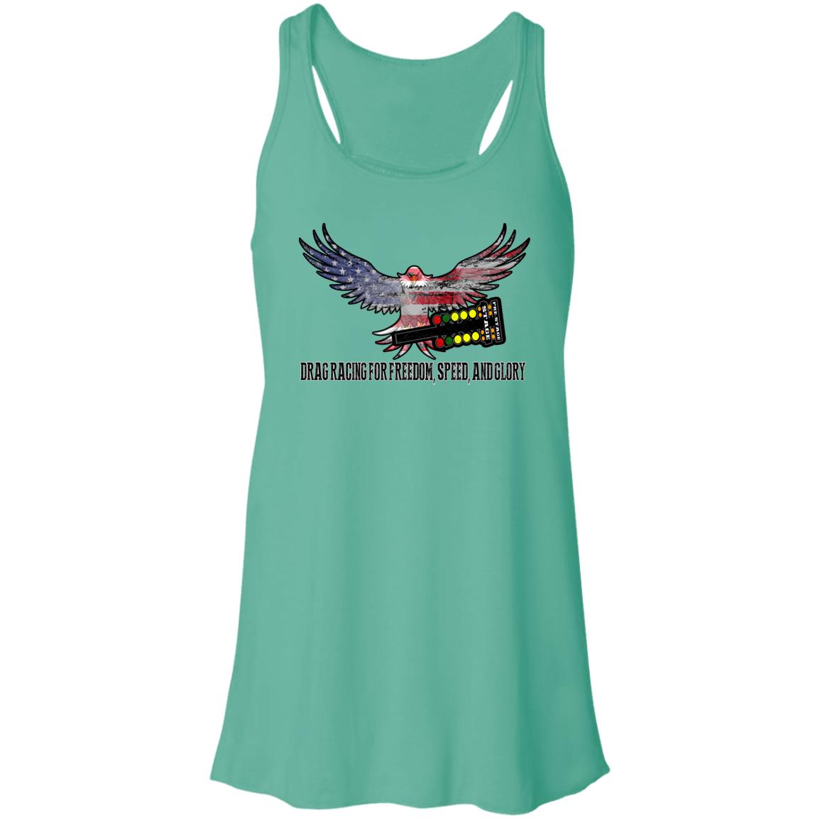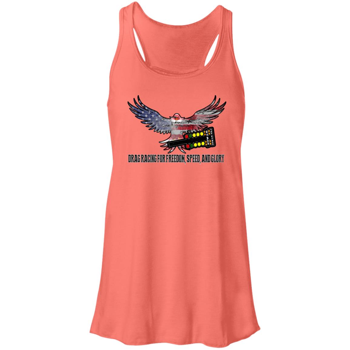 Women who are enthusiastic about drag racing now have a fashionable and comfortable option with the introduction of the Drag Racing for Freedom, Speed, and Glory Flowy Racerback Tank.