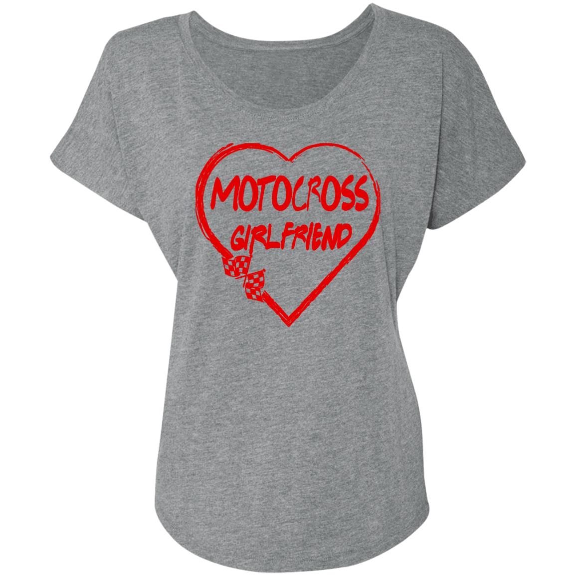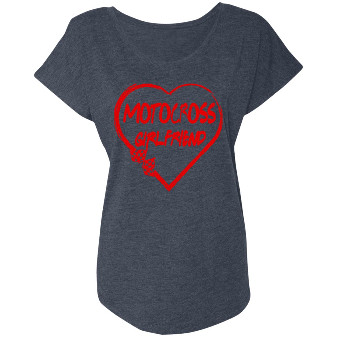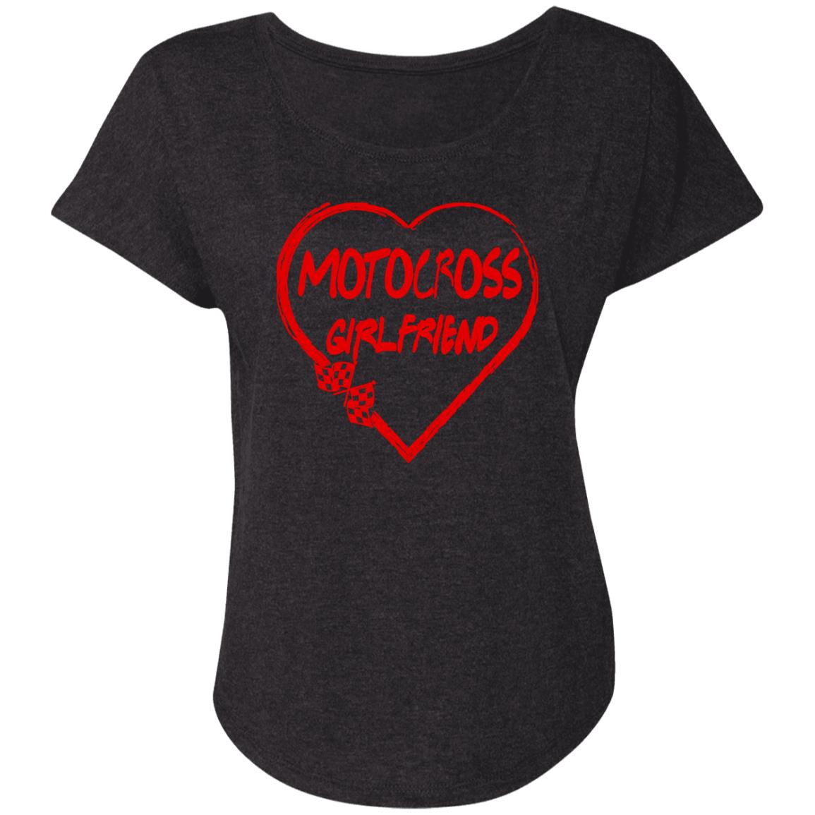 The Motocross Girlfriend Heart Ladies' Triblend Dolman Sleeve shirt will take your motocross style to the next level. Get yours now and show your motocross pride.