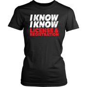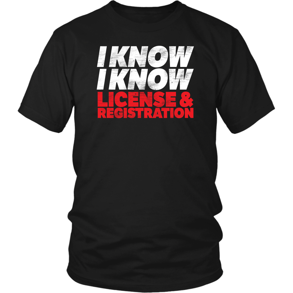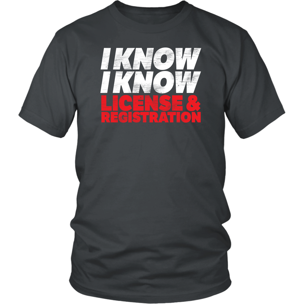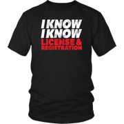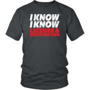 I Know I Know License And Registration T-Shirts!