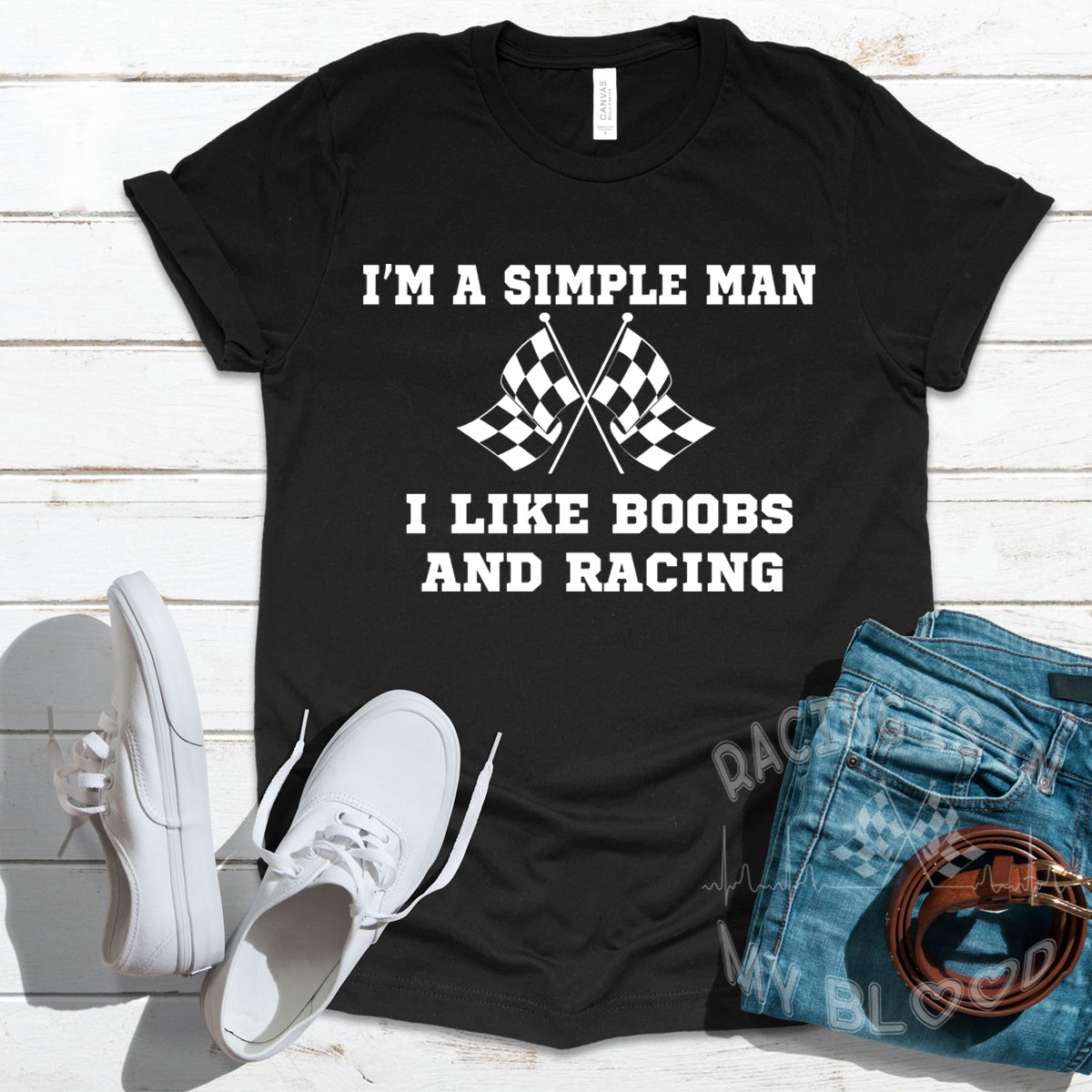 I'm A Simple Man I Like Boobs And Racing T-Shirts!