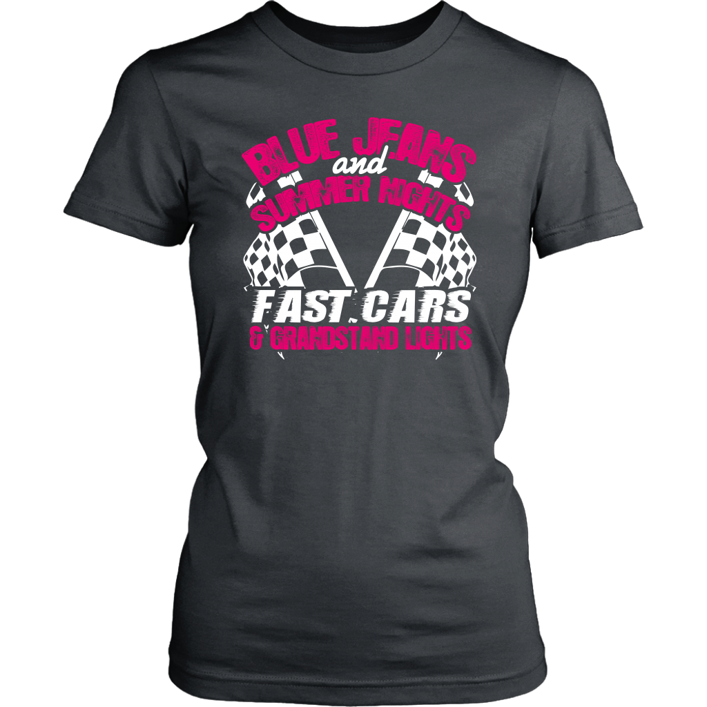 Blue Jeans And Summer Night Fast Cars & Grandstand Lights T-Shirts!