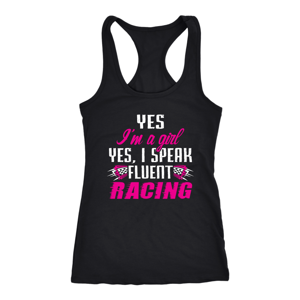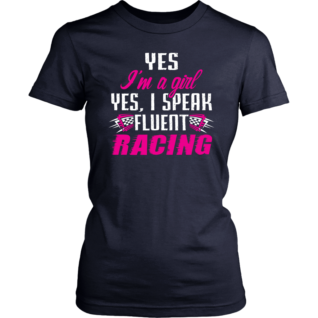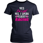 Yes I'm A Girl Yes I Speak Fluent Racing T-Shirts!