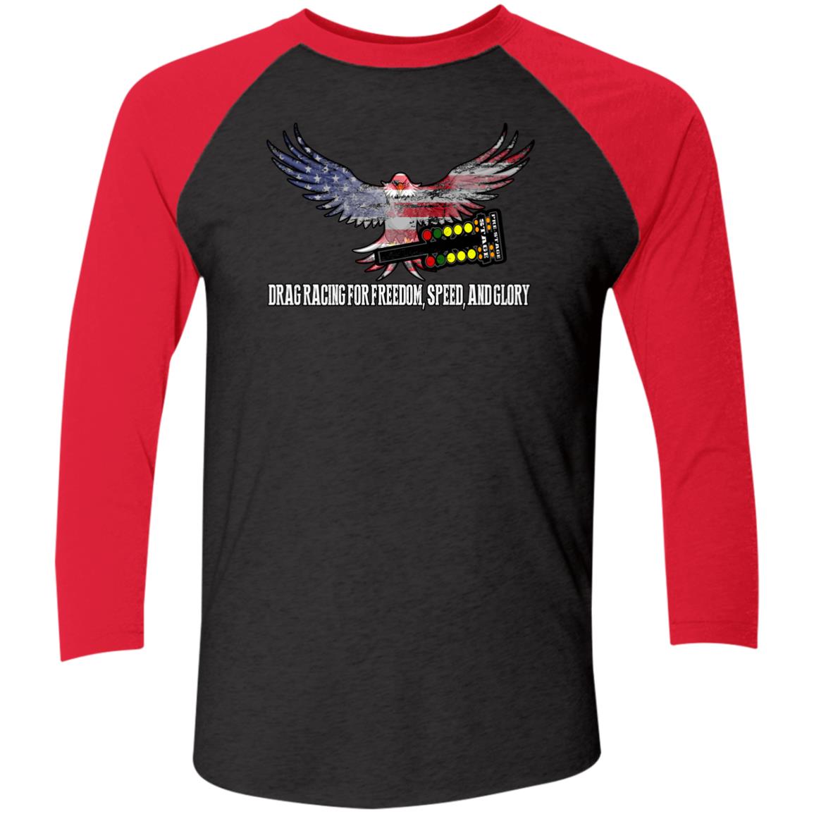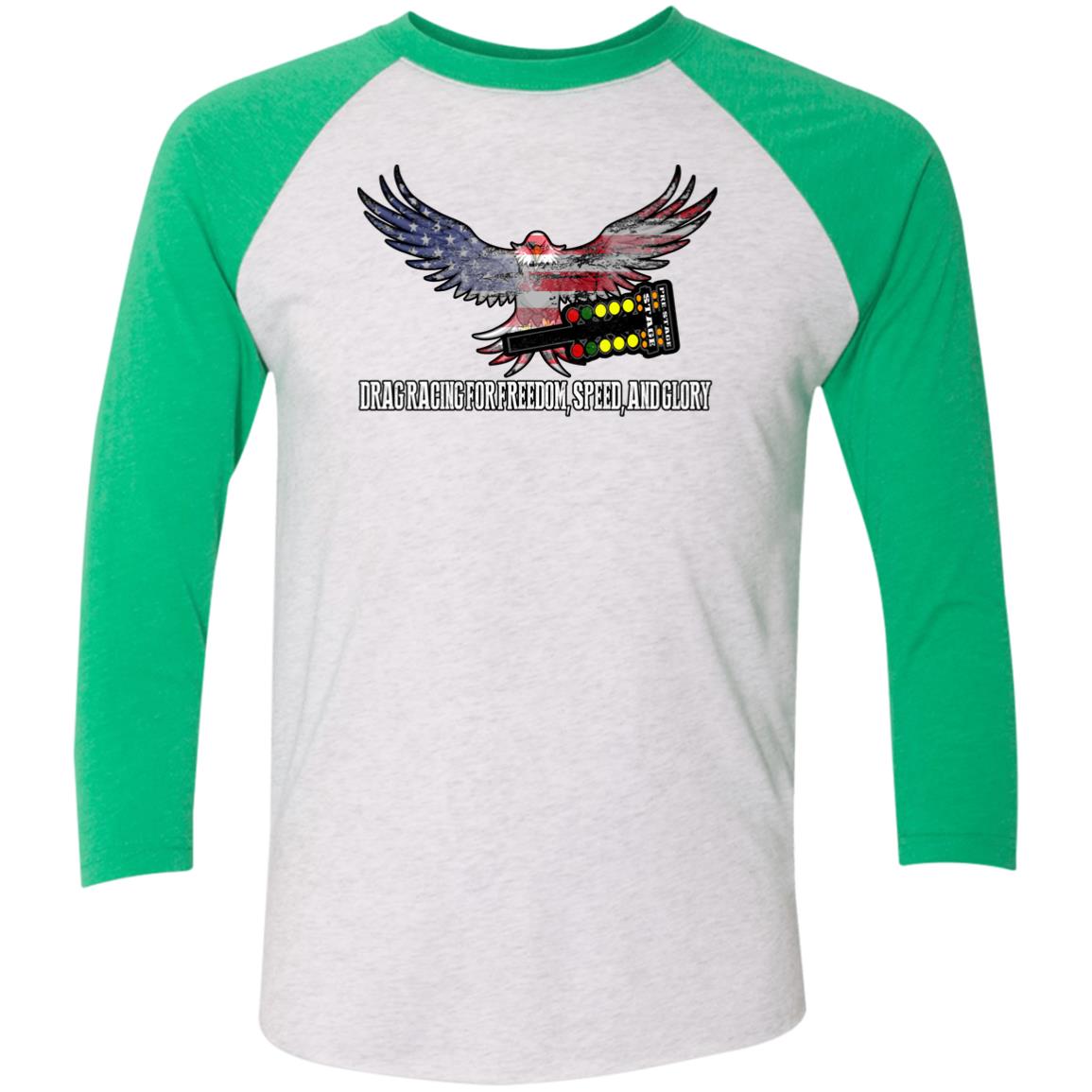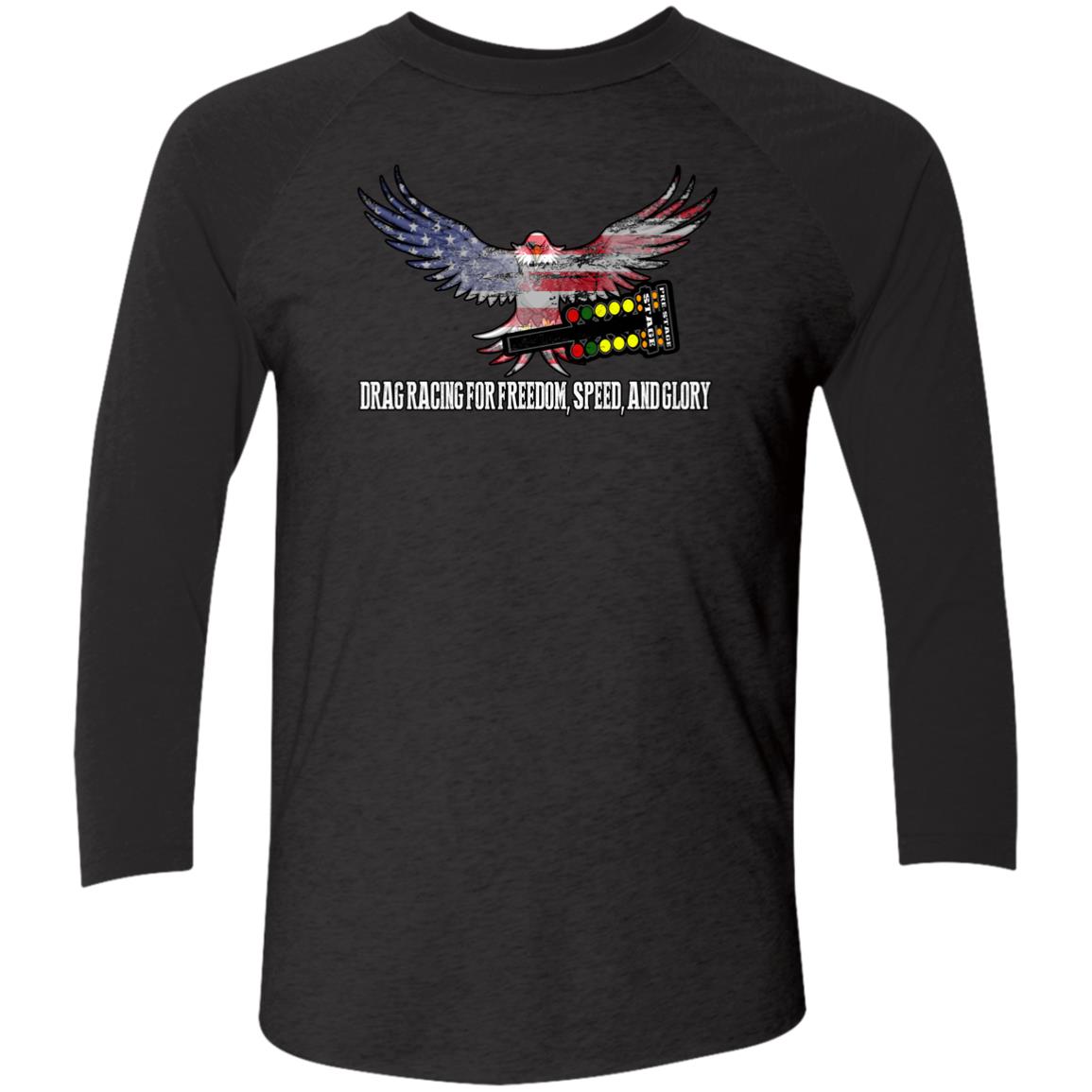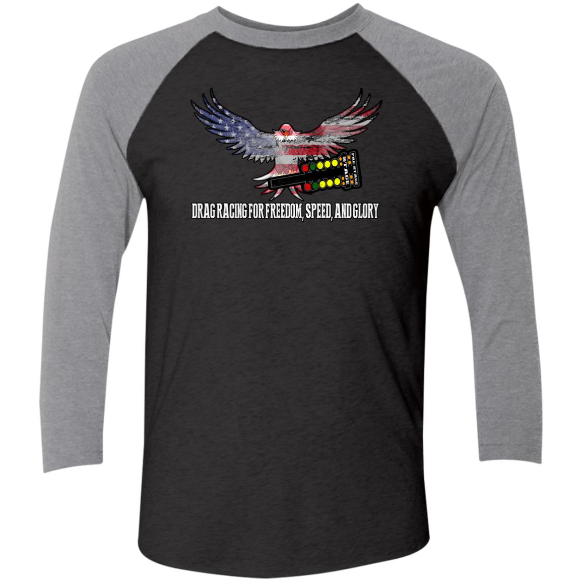 Drag Racing for Freedom, Speed, and Glory Tri-Blend 3/4 Sleeve Raglan T-Shirt