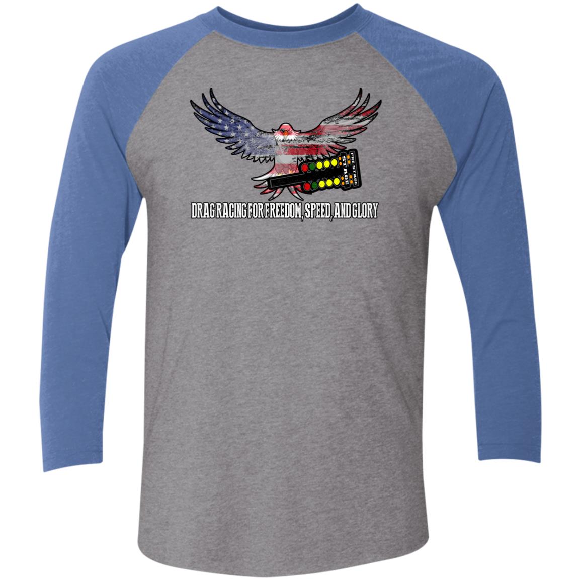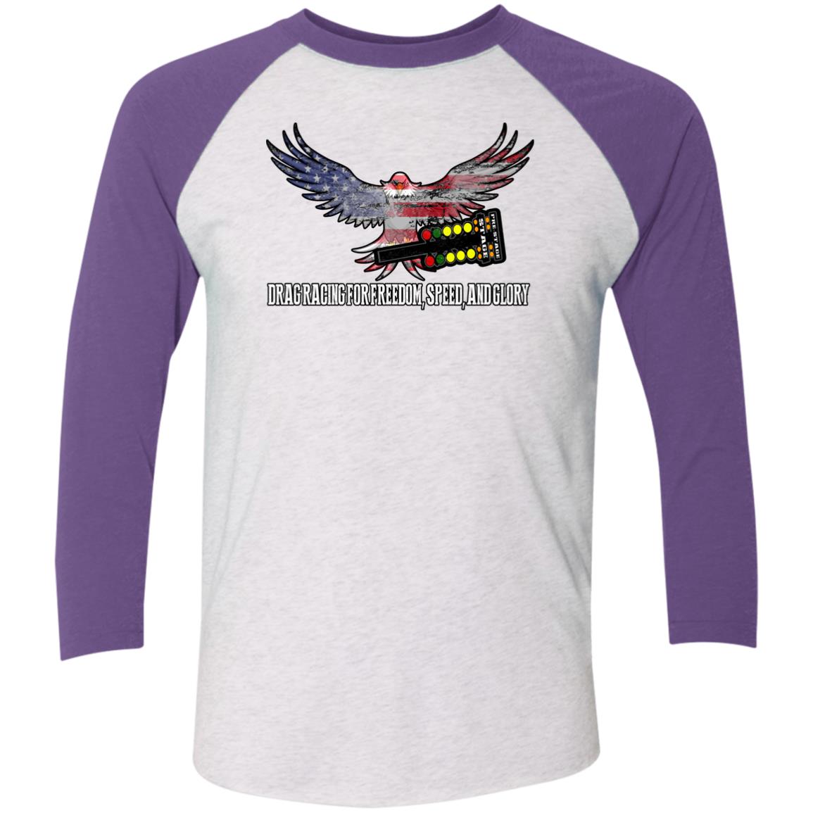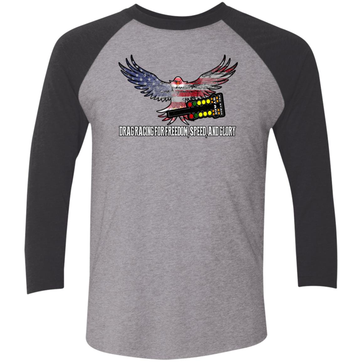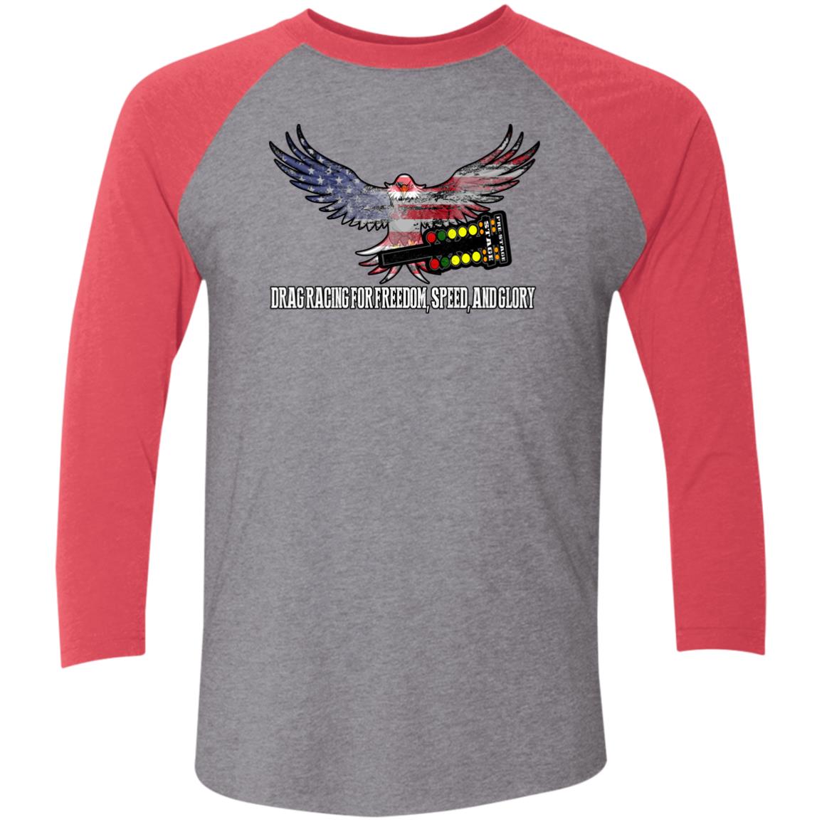 Drag Racing for Freedom, Speed, and Glory Tri-Blend 3/4 Sleeve Raglan T-Shirt