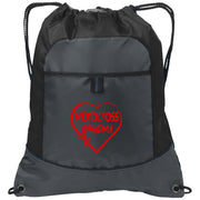 Our Motocross Grandma Heart Pocket Cinch Pack is a practical and fashionable addition to any grandma's wardrobe who enjoys motocross. This cinch pack is constructed from 210 denier polyester to endure the rigors of daily use and display your enthusiasm for the sport.