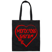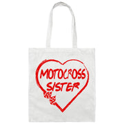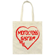 The Motocross Sister Heart Canvas Tote Bag is an essential item for every motocross fan or anyone shopping for one. It's a chic way to show off your love of motocross, your sense of style, and your practical side.