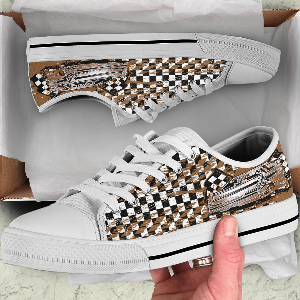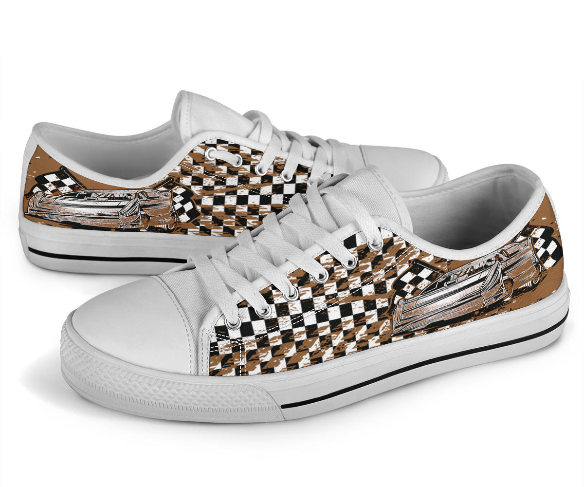 Dirt Racing Checkered Late Model Low Tops White