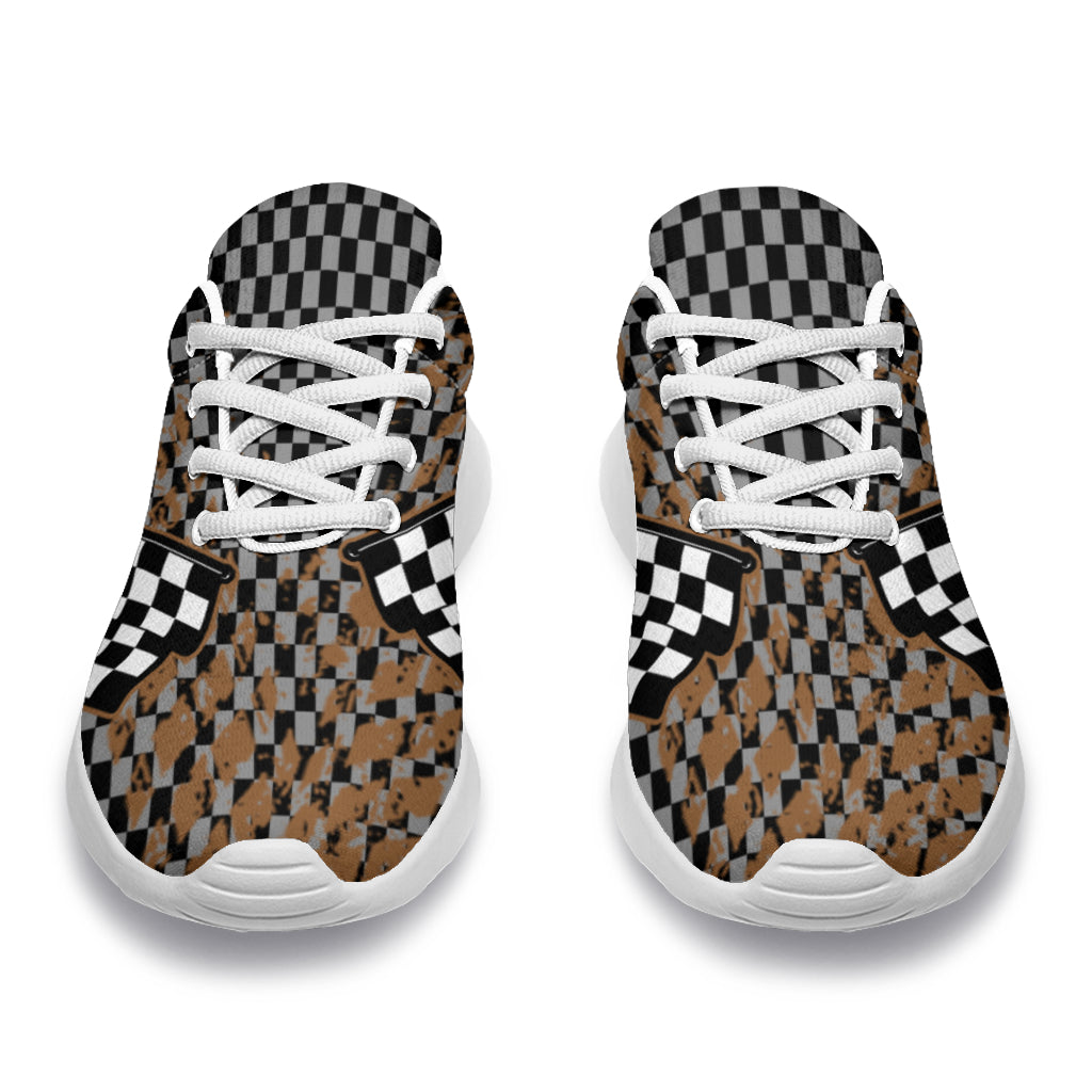 Dirt Racing Muddy Checkered Flag Sneakers White