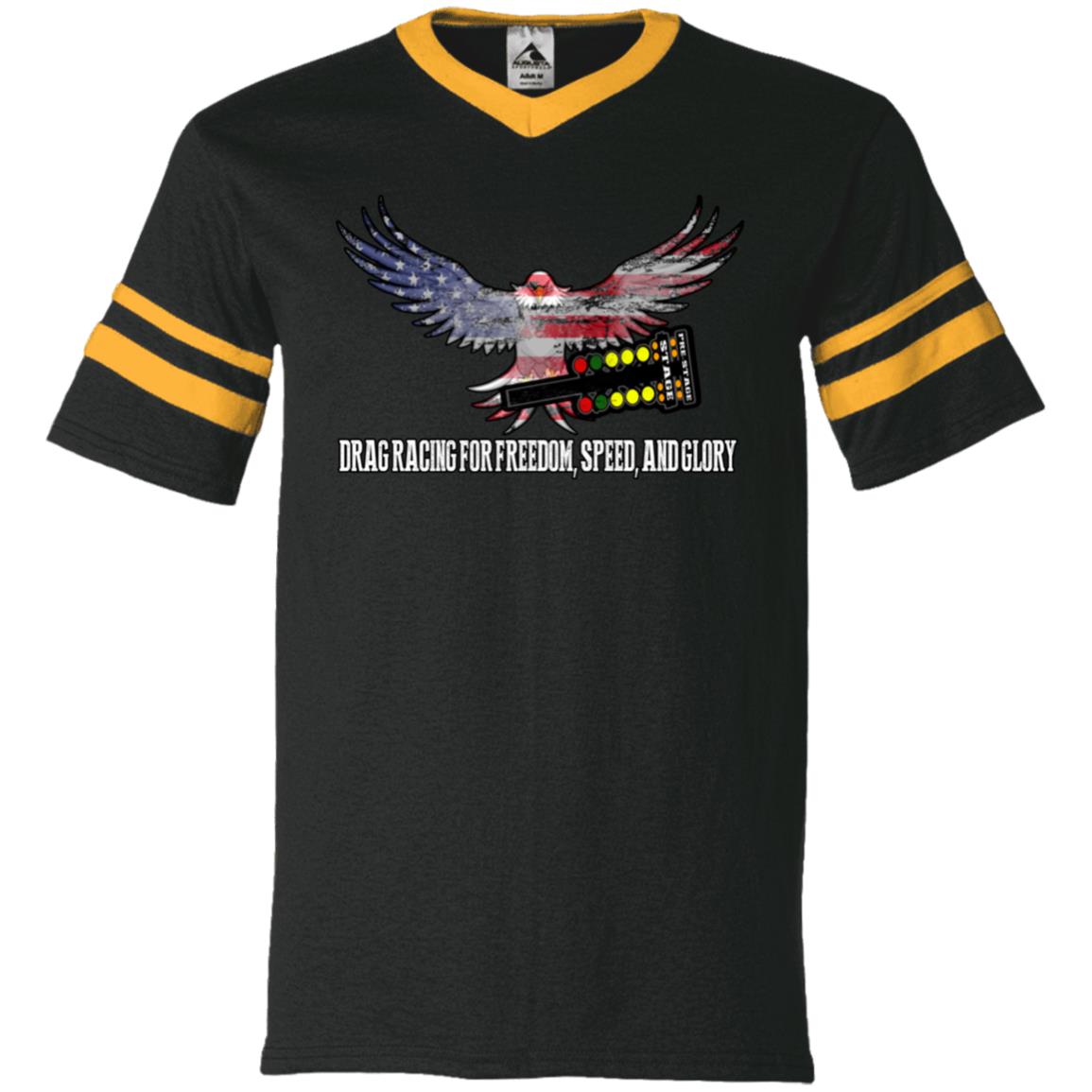 Drag Racing for Freedom, Speed, and Glory V-Neck Sleeve Stripe Jersey